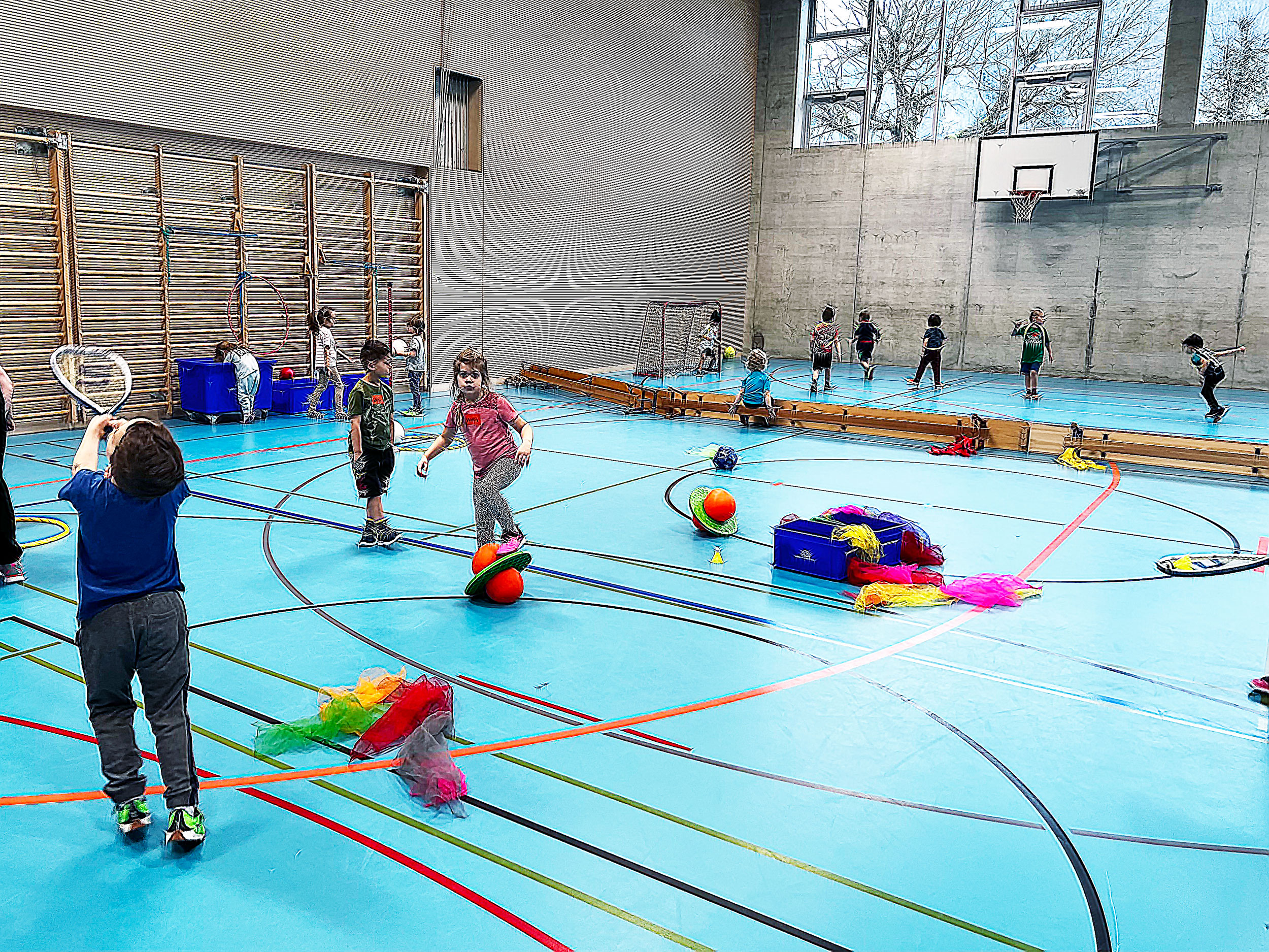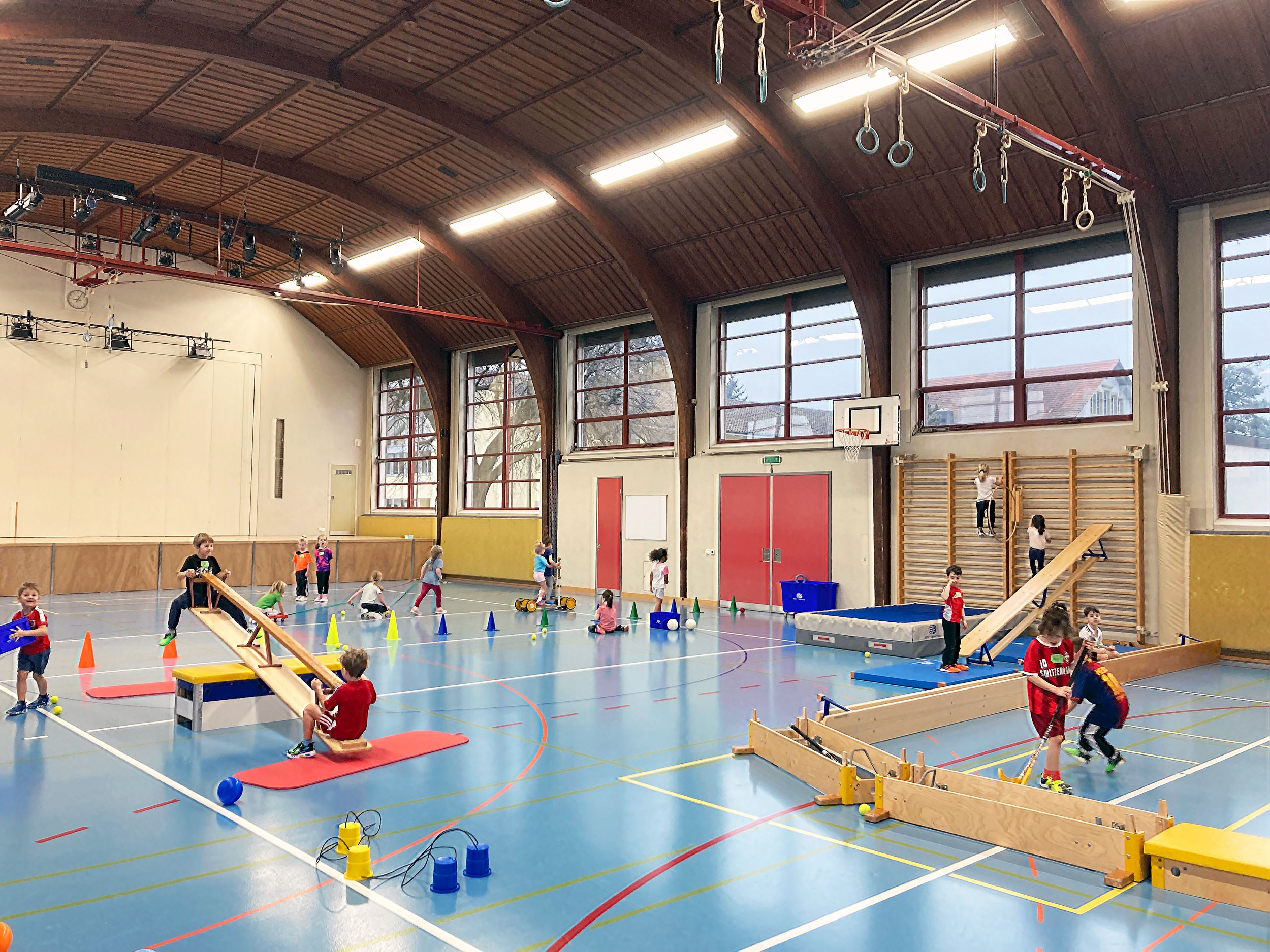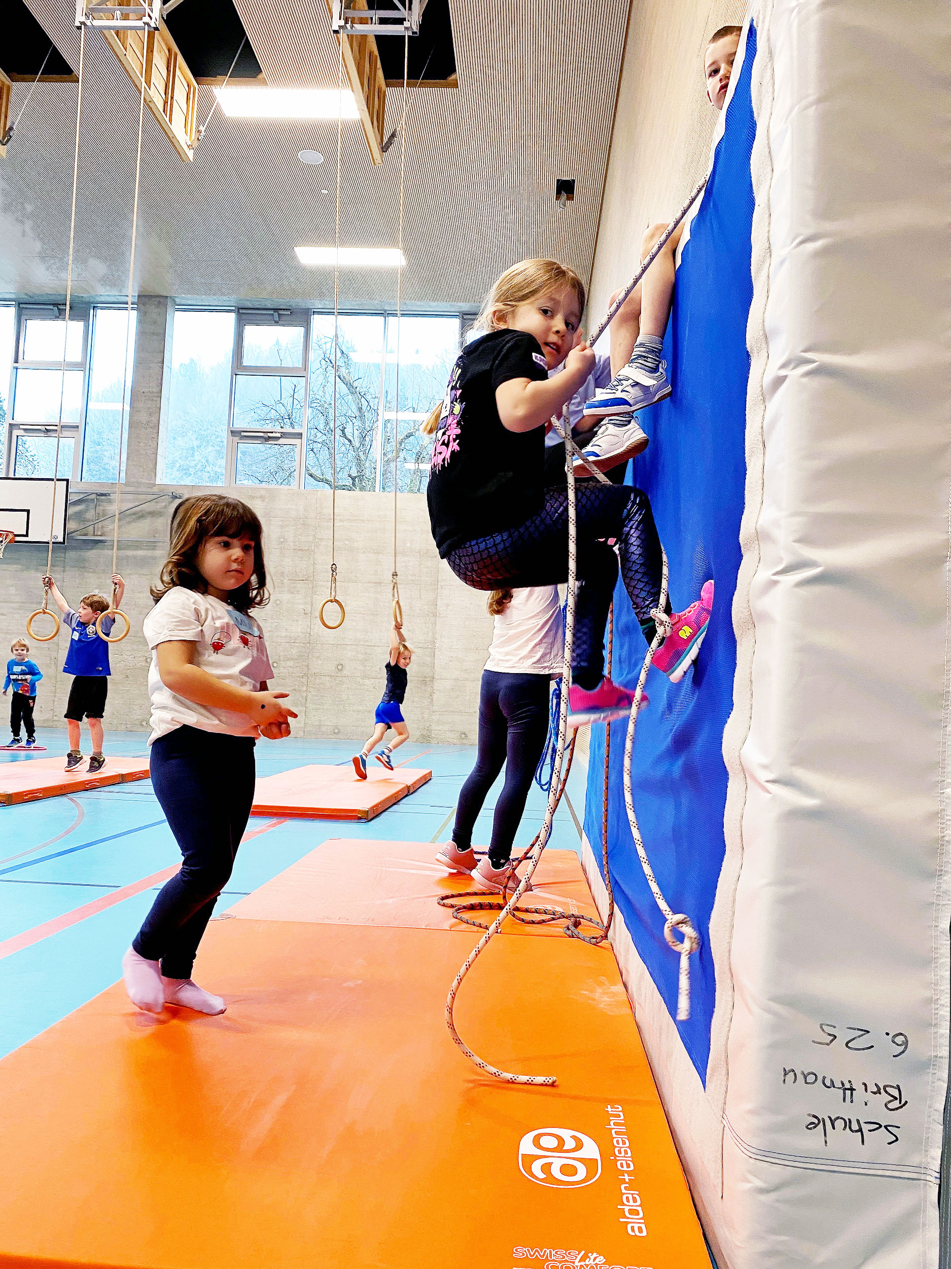 Letzten Donnerstag trafen sich alle 4 Kindergartenabteilungen in den Turnhallen im Dorf zum jährlichen Sportmorgen. In allen drei Hallen wurde fleissig geturnt, miteinander gespielt, geklettert, etwas Neues ausprobiert und viel gelacht.