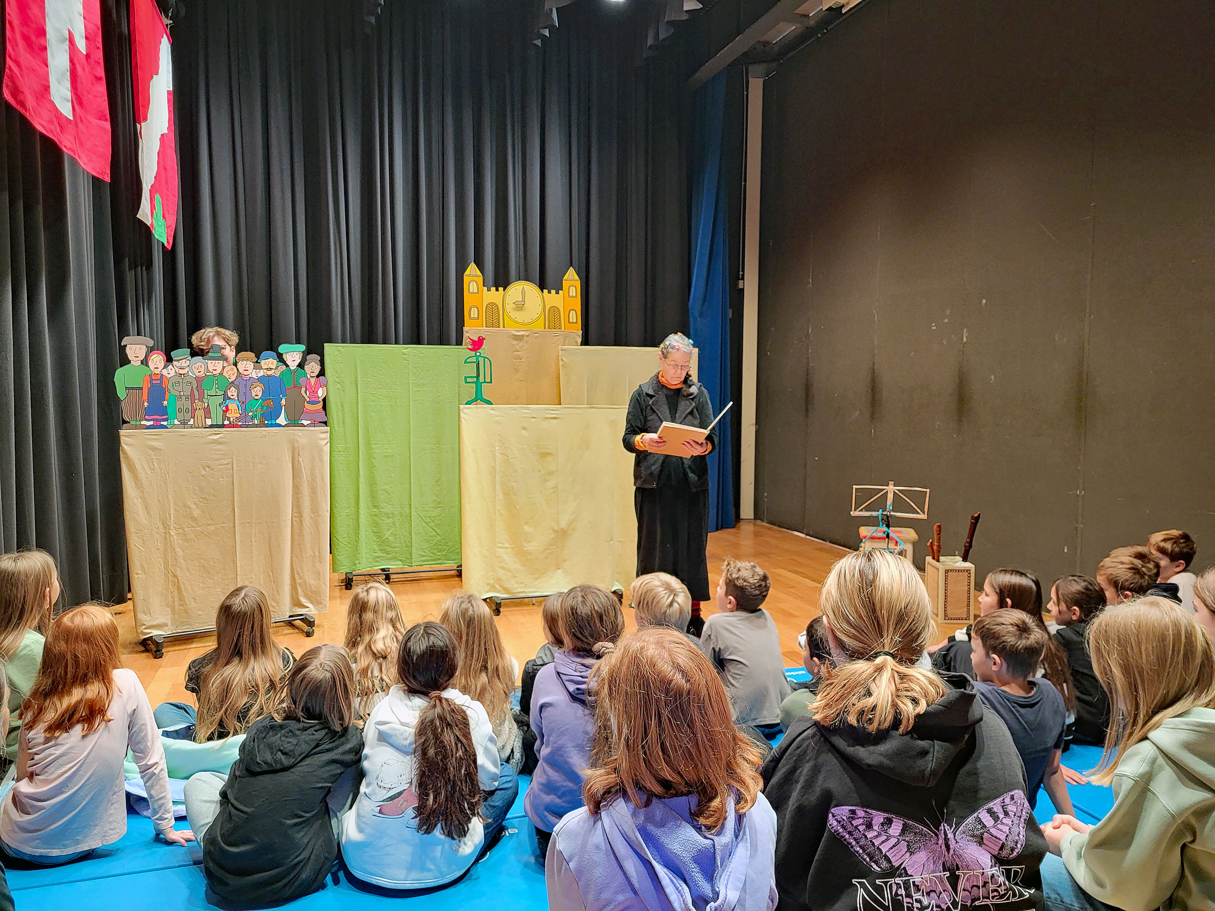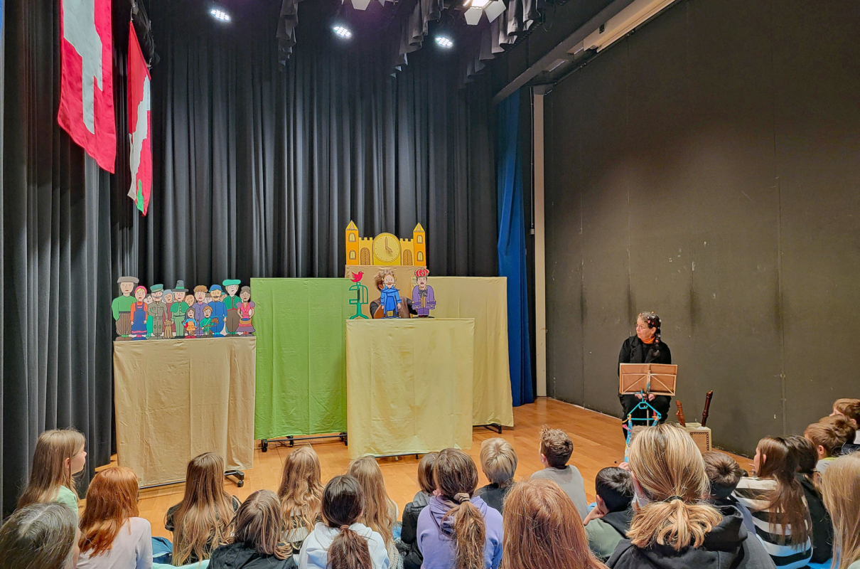 Käthi Schmid und Cornelia Fluri, bekannt als «Theater Chlämmerlisack», waren Mitte November zu Gast an unserer Schule. Die Kinder kamen in den Genuss des Märchens «Em Kaiser siini nöie Chleider».