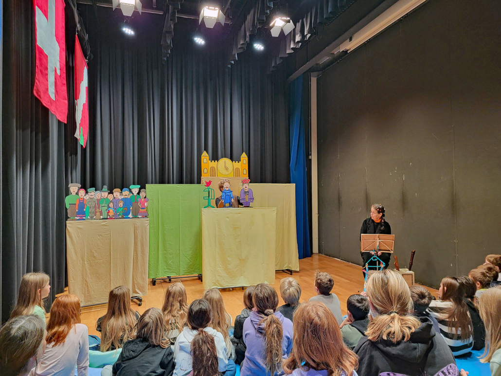 Käthi Schmid und Cornelia Fluri, bekannt als «Theater Chlämmerlisack», waren Mitte November zu Gast an unserer Schule. Die Kinder kamen in den Genuss des Märchens «Em Kaiser siini nöie Chleider».